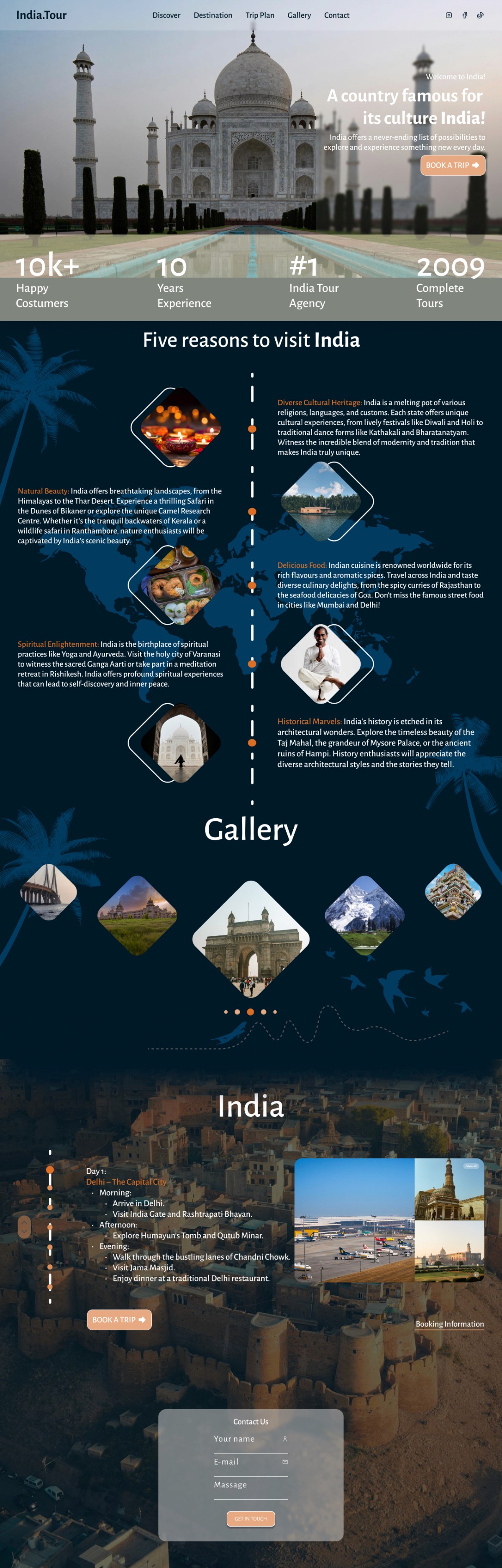 Highlights: Key stats (10k+ happy customers, 10 years of experience, #1 India Tour Agency) to establish trust.